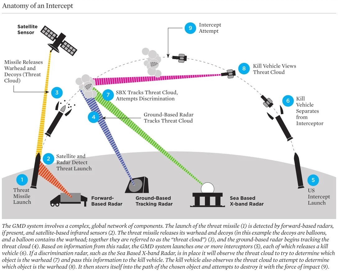 When it comes to antimissile defense shield of USA, there is no single system. Instead, different systems are designed to intercept warheads at various stages, such as: