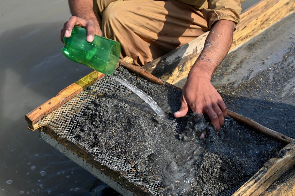 A prospector searches for gold in area of (KPK), Pakistan